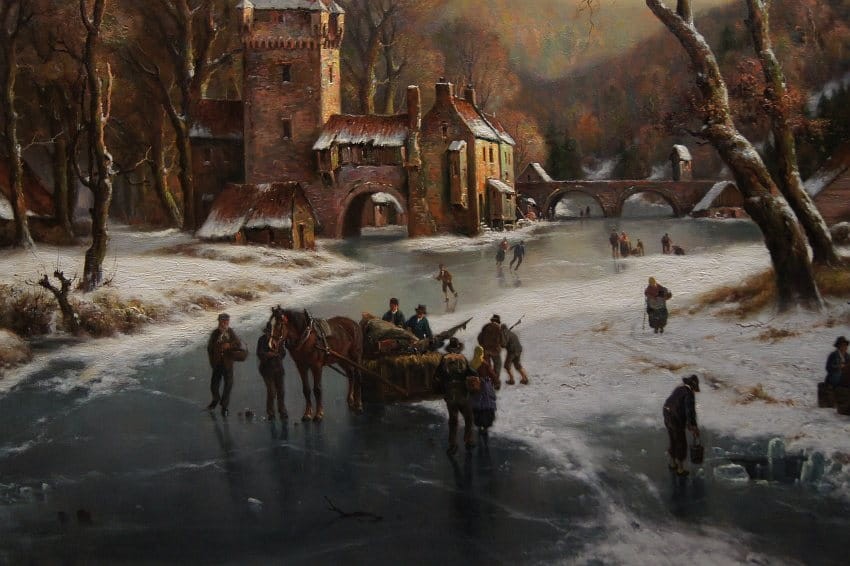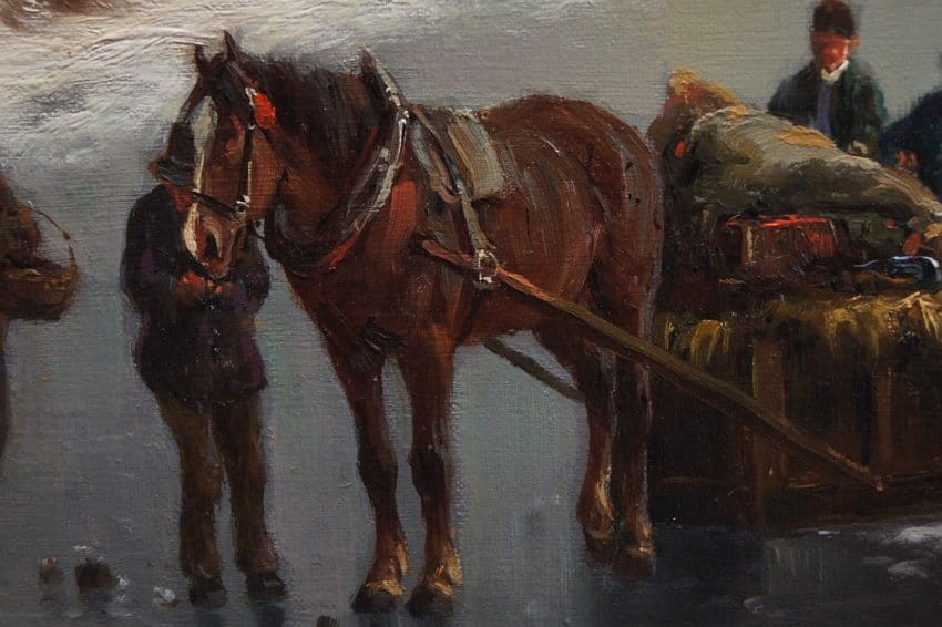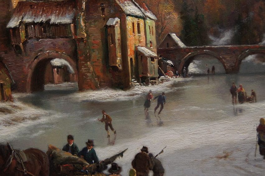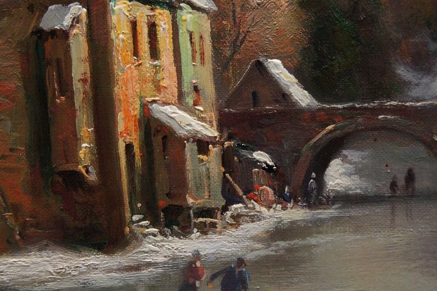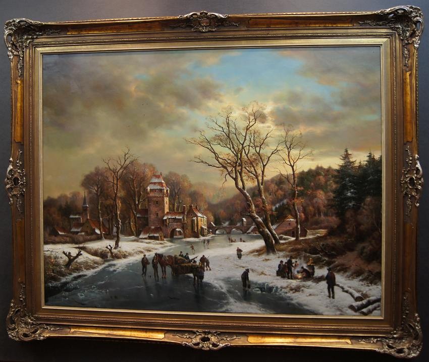 Kolejna wyjątkowa perełka w ofercie naszej galerii. Niezwykle imponujących gabarytów dzieło z idealnym przeznaczeniem do wystroju salonu, rezydencji lub pałacyku. Olejny, autentyczny obraz olejny, znakomitego aukcyjnego malarza scen rodzajowych Horsta Altermanna. Oferowany praca namalowany jest na płótnie. Dzieło stworzone z niezwykłą precyzją i dbałością o wszystkie szczegóły. Niezwykle barwna praca o bardzo dużych walorach artystycznych i dekoracyjnych, przedstawia niezwykle sympatyczną, wielopostaciową scenę zimowych igraszek na zamarzniętej rzece.