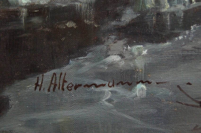 Malarz umieścił na tym obrazie swój autentyczny podpis w lewym dolnym narożniku H. Altermann. Płótno oprawione w wyjątkowo dekoracyjną pałacową, oryginalną ramę w kolorze złotym. Dzieła artysty cieszą się ogromnym powodzeniem i są pożądane na aukcjach dzieł sztuki. Znajdują w niejednej prywatnej kolekcji, i są jej znakomitą ozdobą.