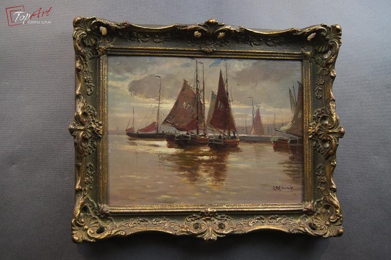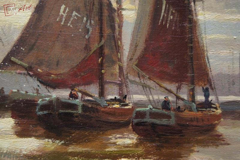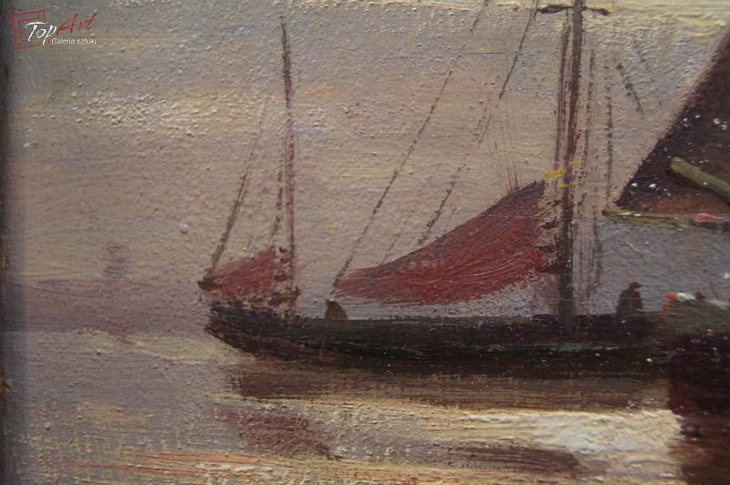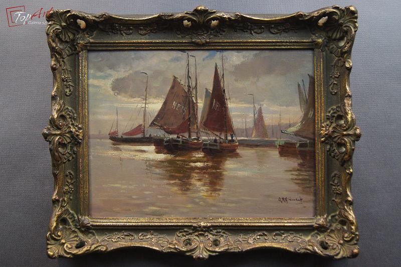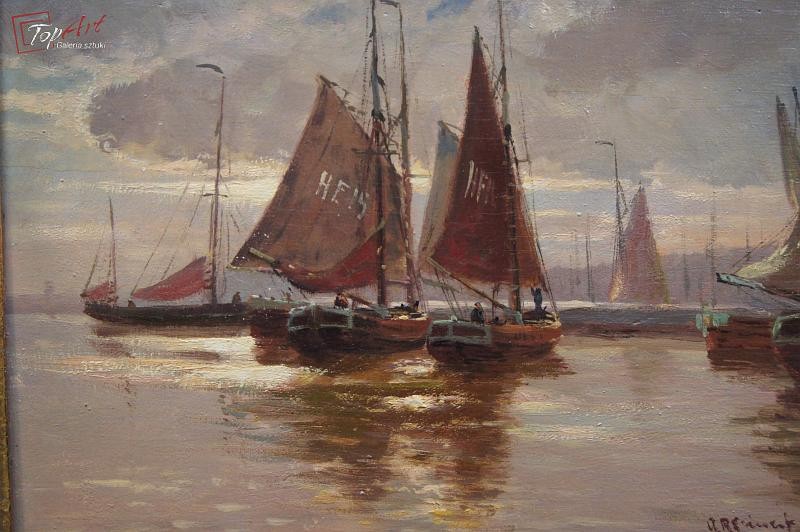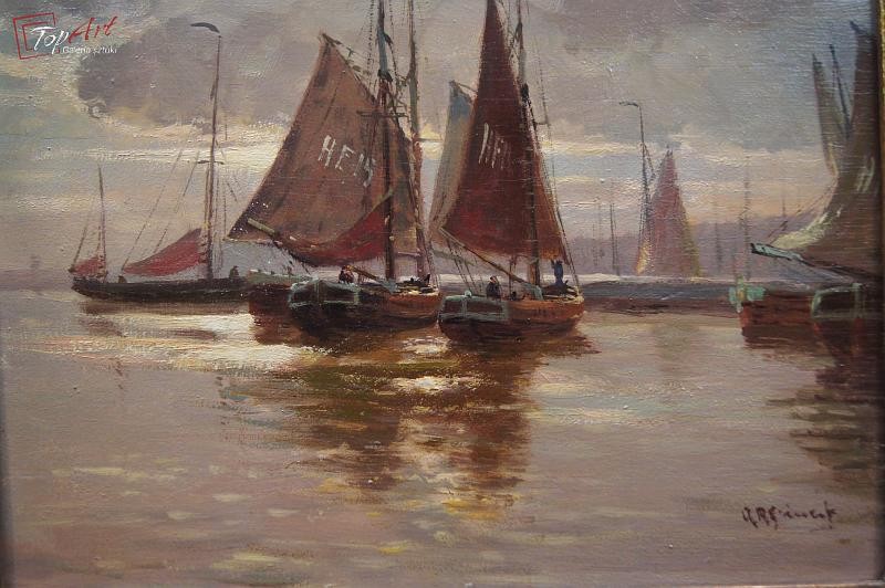 Obraz olejny Adolf Rheinert Przystań kutrów rybackich !!!