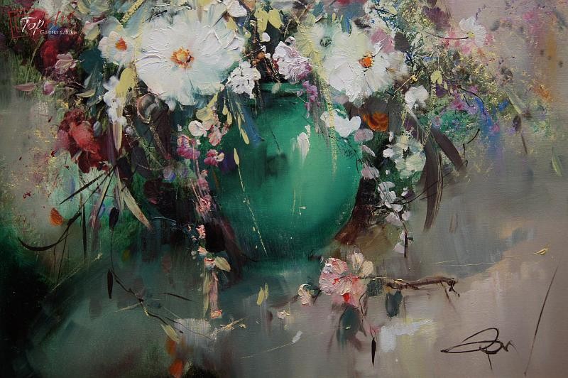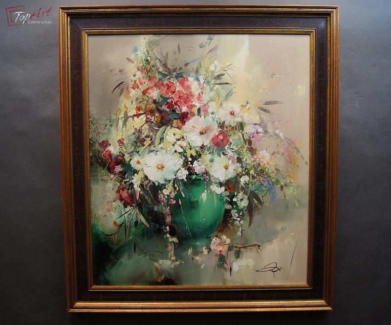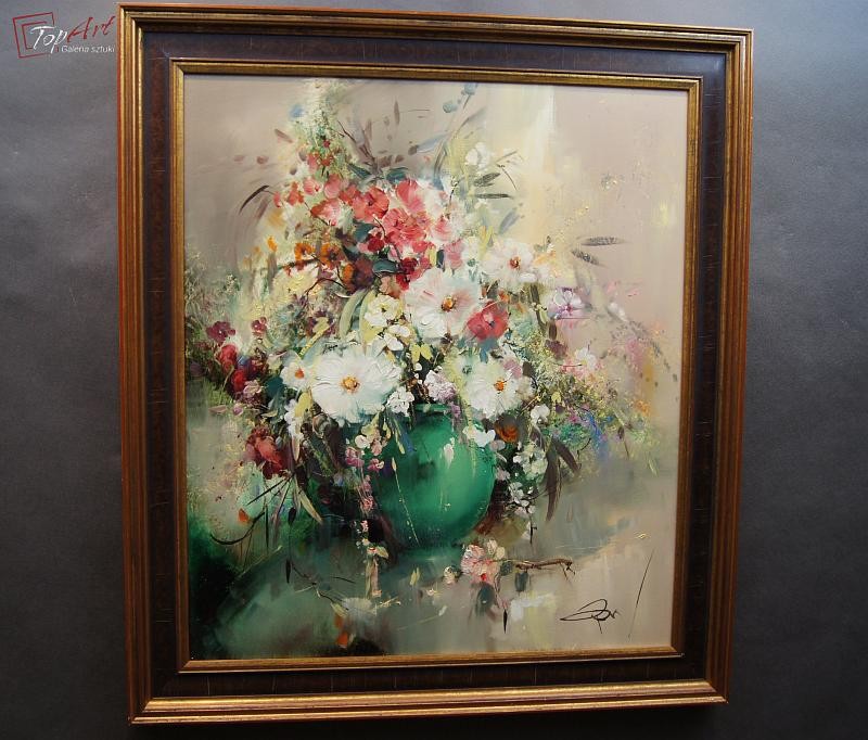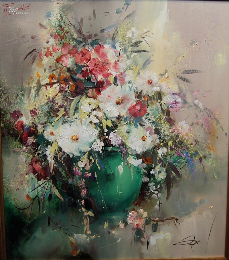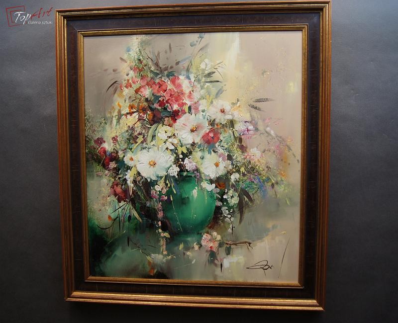 Obraz olejny Alwin Baur - salonowy bukiet kwiatów Polecam !!!