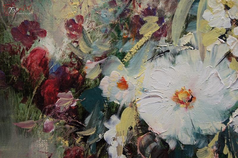 WYMIARY: całości z ramą 92 cm x 82 cm, płótno 80 cm x 70 cm.