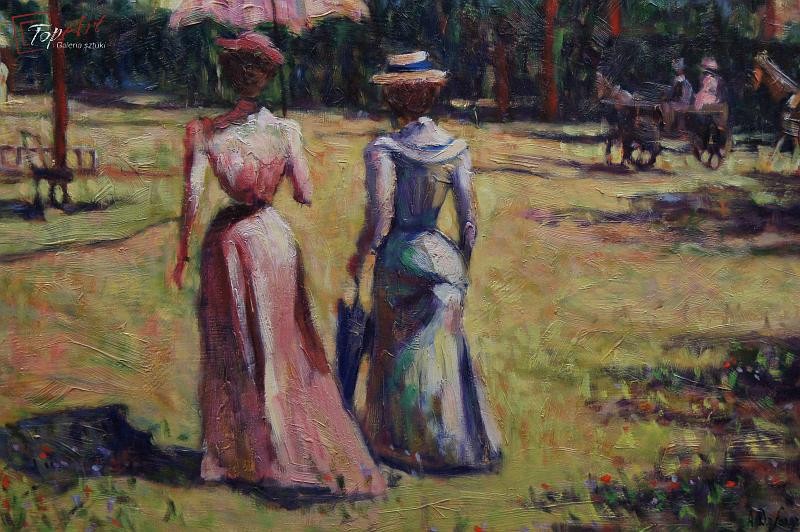Obraz olejny Anna Maria de Saeger spacer w parku mega Hit !!!