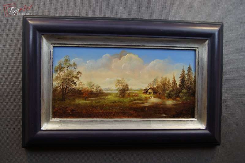 Nieduży oryginalny dekoracyjny obraz, Malowany farbami olejnymi na płycie pilśniowej. Pochodzi z 70 lat 20 wieku. Sygnowany przez artystę w lewym dolnym rogu. Autorem tej pracy jest malarz o nazwisku Żoldy. Obraz malowany w technice pędzla, oprawiony w oryginalną ramę. Przedmiot do powieszenia na ścianie. Nie wymaga jakichkolwiek ingerencji Stan zachowania - bardzo dobry. Wymiary: całości z ramą 26,5 cm x 41,5 cm, obraz 15 cm x 30 cm.