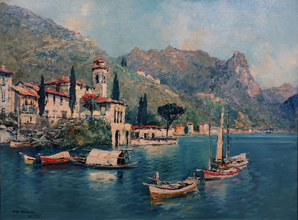 Przedstawiamy Państwu rzadkie i niezwykle nastrojowe dzieło uznanego niemieckiego mistrza, Otto Hellmeiera. Ten obraz olejny na płótnie to zachwycający zapis podróży artysty na południe, ukazujący malowniczą miejscowość Oria nad jeziorem Lugano (Luganersee). Powstałe w latach 50. XX wieku płótno jest kwintesencją powojennego optymizmu i nostalgii za śródziemnomorskim spokojem.