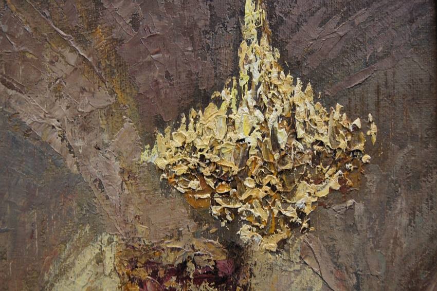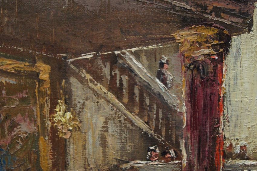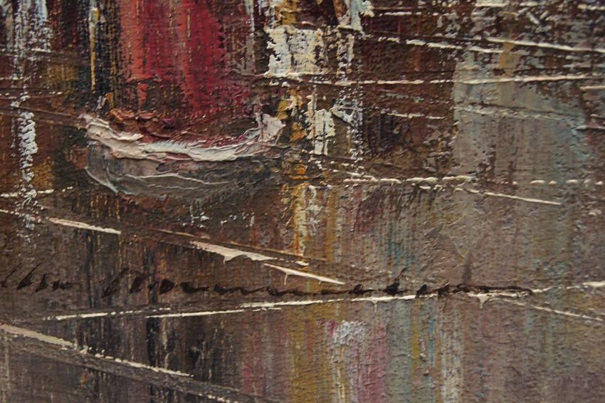 Malarz umieścił na tym obrazie swój autentyczny podpis w lewym dolnym narożniku "Ch. Stemmeler". Zastosowana technika malarska przez artystę: szpachla. Obraz osadzony w starą, drewnianą ,szeroką ramę w typie barokowym. Elementy dekoracyjne zostały wykonane z masy ramiarskiej. Ta niezwykle dekoracyjna rama została wykonana w okresie powstania obrazu w kolorze patynowanego złota z elementami w kolorze ecru. Obrazy artysty cieszą się ogromnym powodzeniem. Obraz ten szczególnie polecamy, jako wyjątkową ozdobą Państwa salonu.