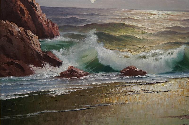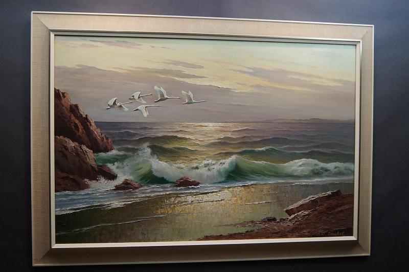 WYMIARY: całość z ramą 98 cm x 138 cm, obraz w świetle ramy 80 cm x 120 cm.