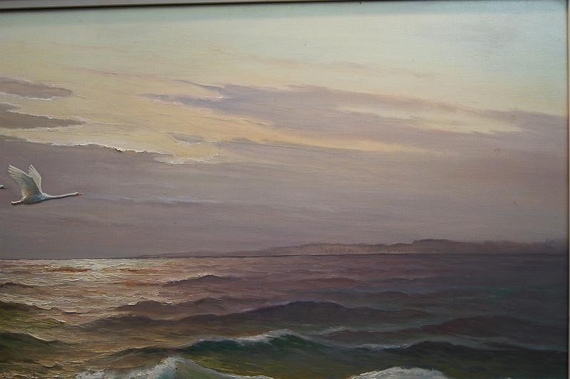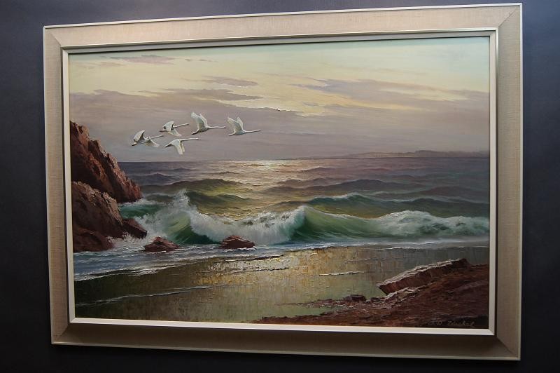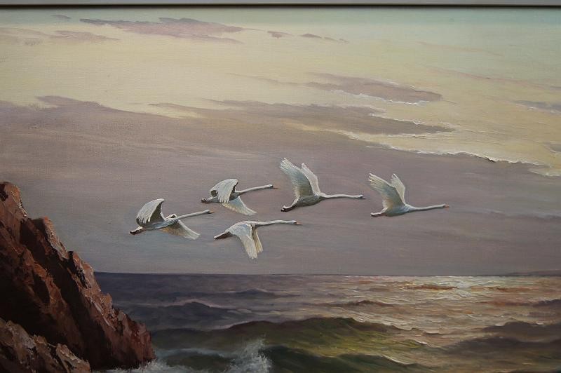 Panoramiczny obraz lecące łabędzie nad brzegiem morza Gustav Weiss