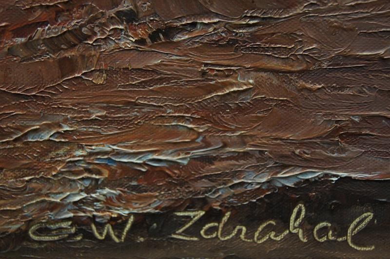 Autentyczna praca Gustava Weissa.Obraz olejny o dużych rozmiarach. Namalowany farbami olejnymi na płótnie w technice pędzla. Sygnowany odręcznie przez artystę w prawym dolnym narożniku G.W. ?. Oprawiony w przestrzenną ramę pochodząca z okresu powstania pracy. Obraz niezwykle dekoracyjny, wspaniała kolorystyka i przedstawienie odpowiedniego naświetlenia powoduje iż obraz idealnie pasuje do wystroju każdego pomieszczenia.