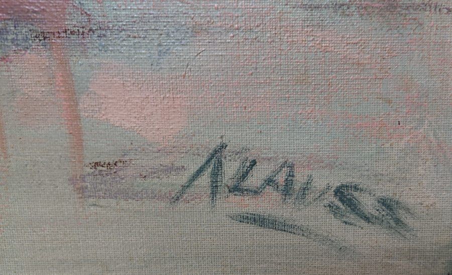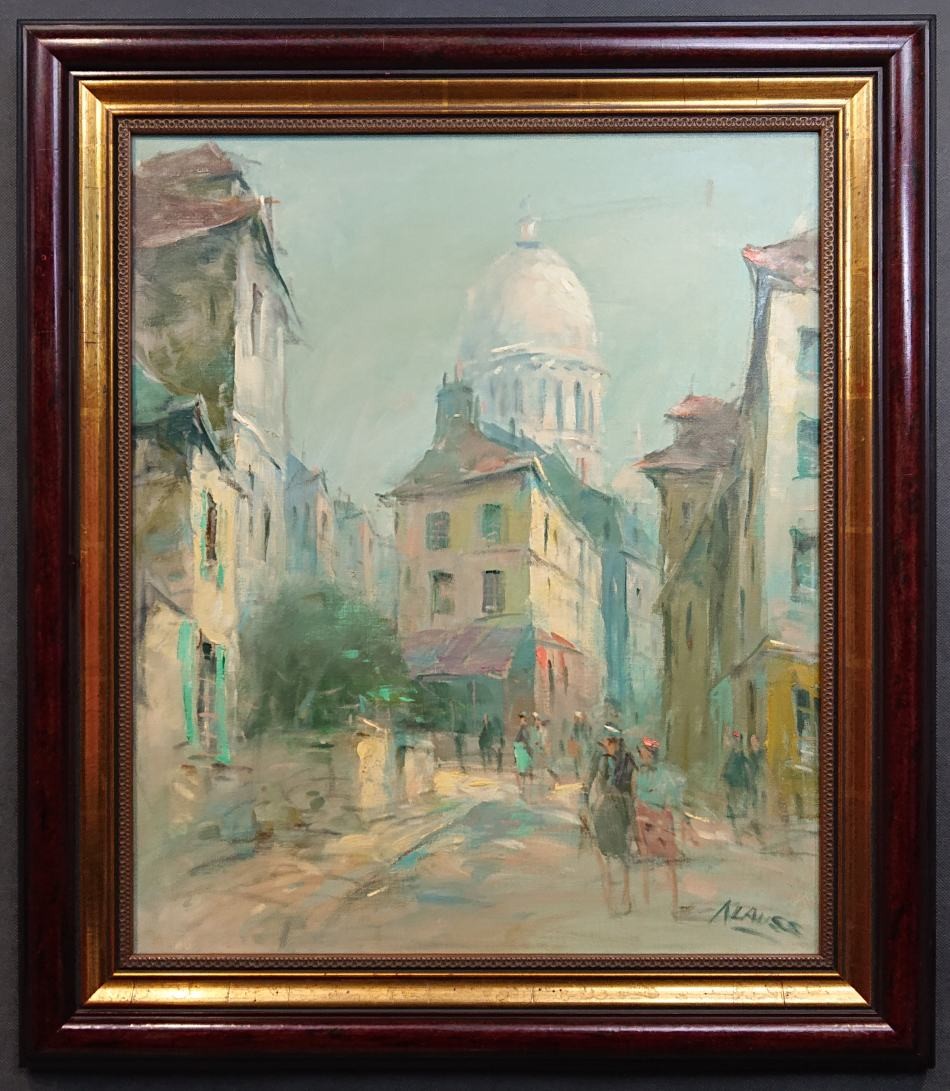 Na zbliżeniu widać wyraźną sygnaturę: ALAUSS (lub podobnie brzmiące nazwisko, np. Alausse).