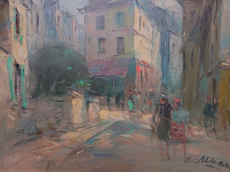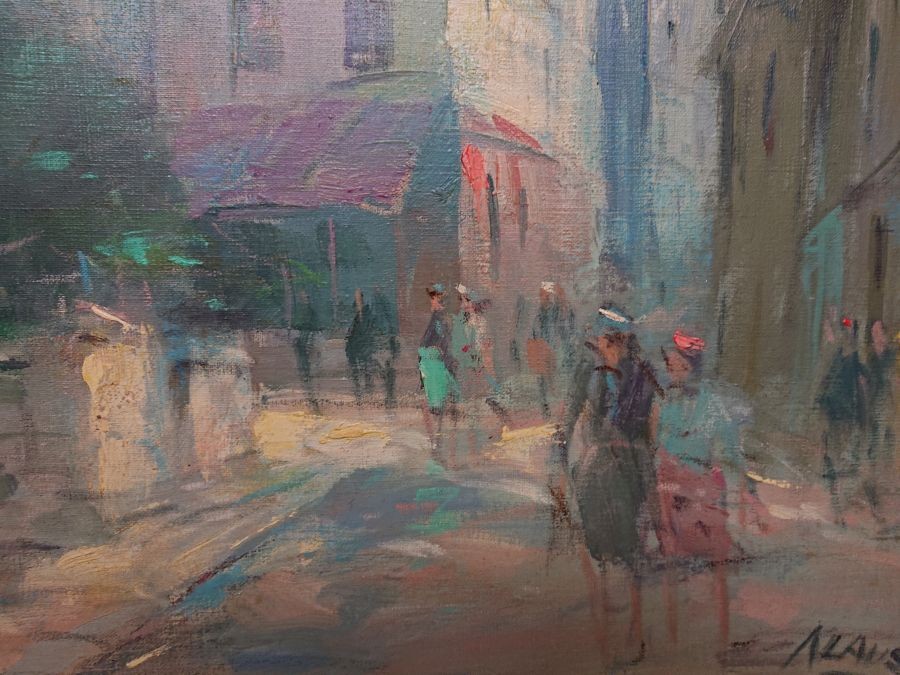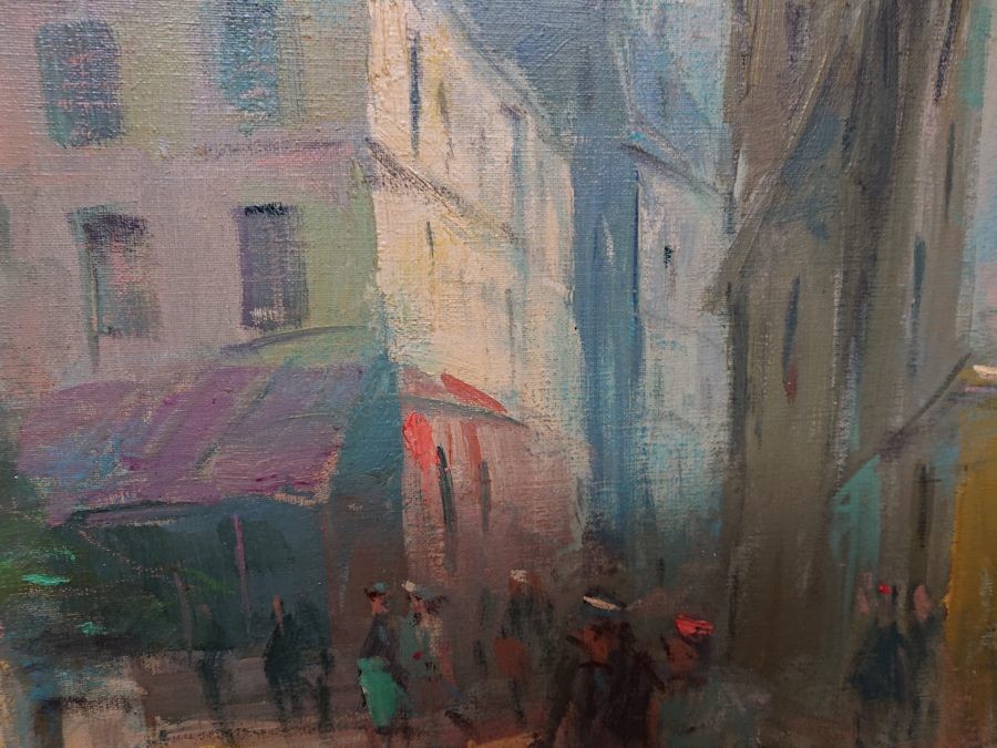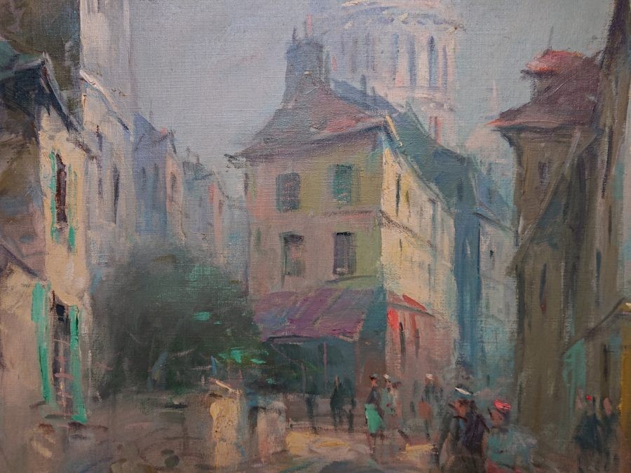 Analiza: Nazwisko to sugeruje pochodzenie francuskie, co idealnie koresponduje z tematyką obrazu. W połowie XX wieku wielu artystów (często tzw. "malarzy z Montmartre") tworzyło takie weduty (widoki miast) dla galerii i turystów, osiągając przy tym bardzo wysoki poziom artystyczny.
