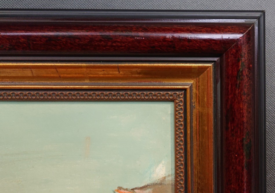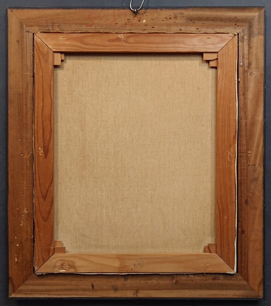 Obraz posiada prostą, nowoczesną ramę korytową (typu "L-frame") w kolorze miedzianego lub starego złota. Tego typu oprawa była niezwykle popularna w latach 60. 70. i 80. XX wieku.