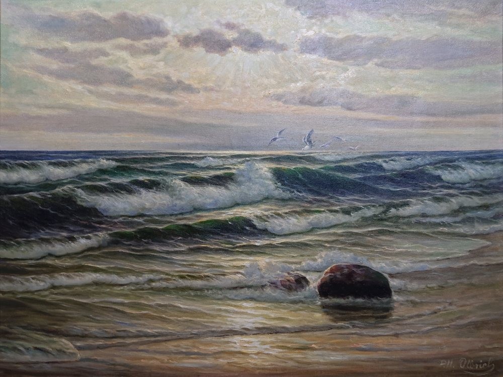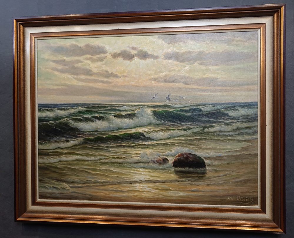 Paul Heinz Olbrich – Majestatyczny Bałtyk | Oryginalny Obraz Olejny w Złotej Ramie