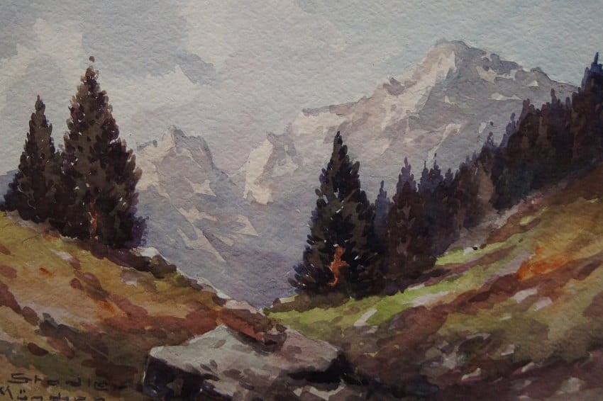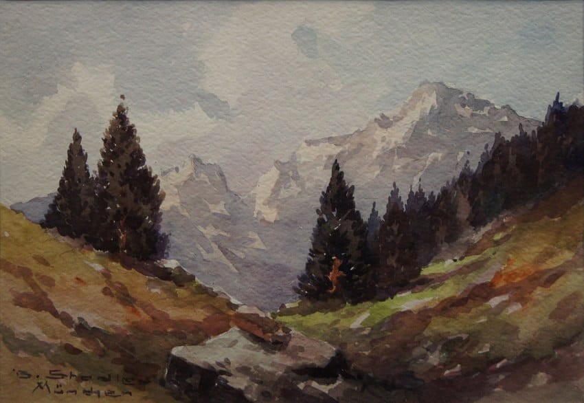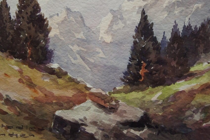Pejzaż górski akwarela Benno Stadler