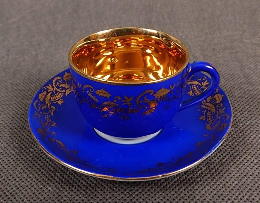Piękna złocona filiżanka ze spodkiem ⭐ Przedwojenna porcelana