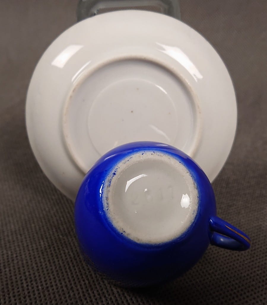 WYMIARY: Spodek średnica 9,7 cm, filiżanka wysokość 3,8 cm, średnica bez uchwytu 5,4 cm.