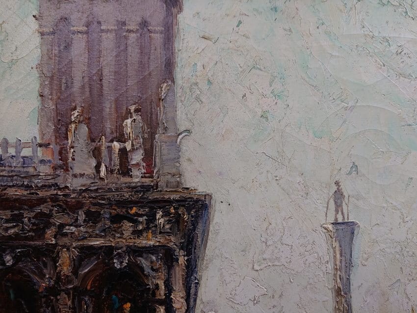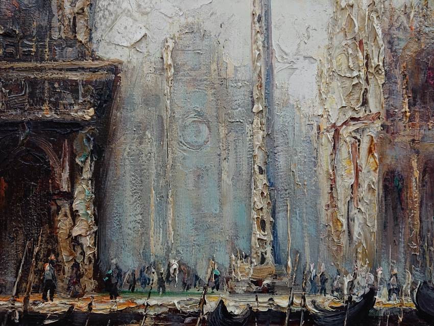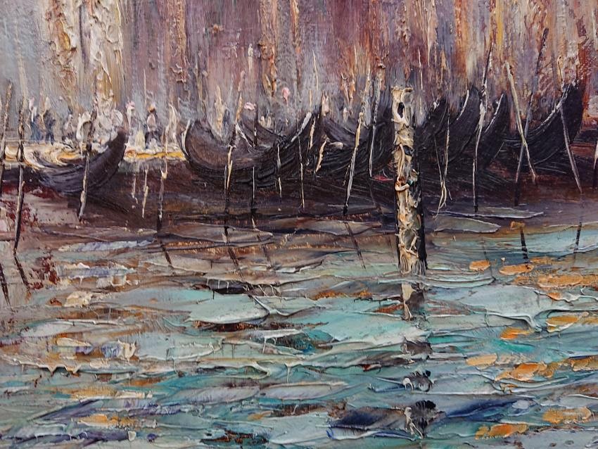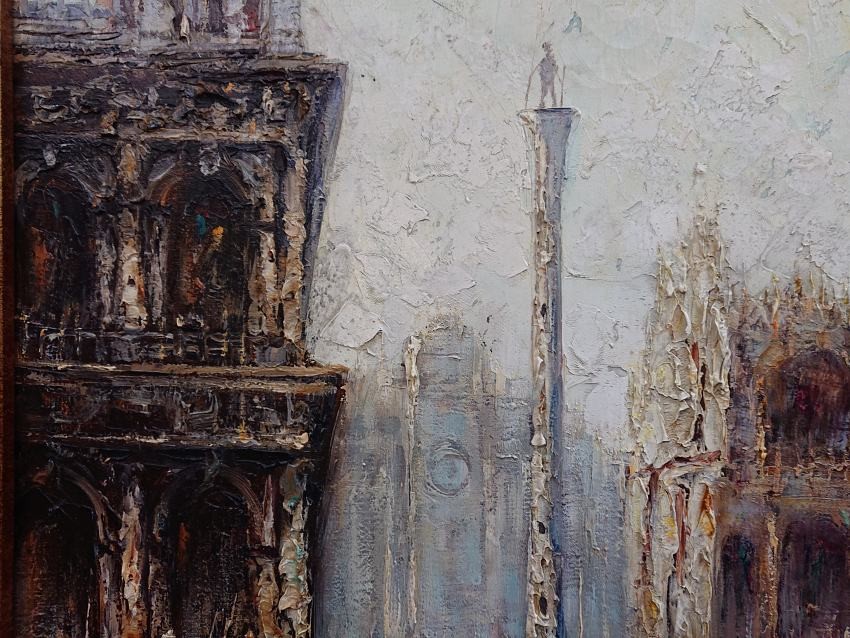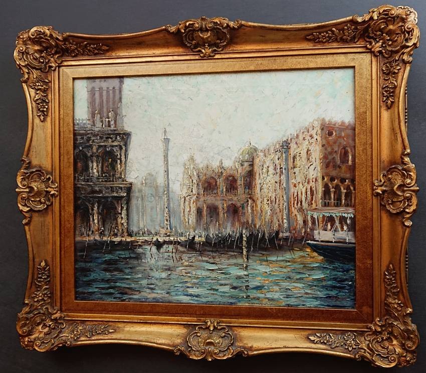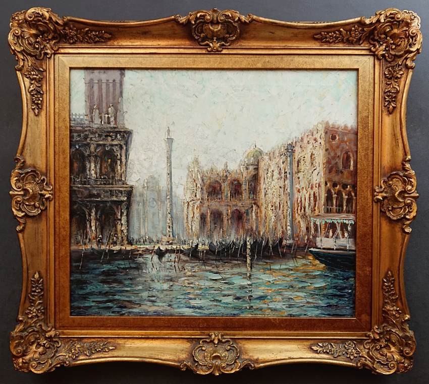 Wyjątkowy, impresjonistyczny obraz olejny przedstawiający scenerię z uroczej Wenecji. Na obrazie artysta uwiecznił Plac Świętego Marka. Autorem pracy jest niemiecki malarz Ludwig Sohler. Jest to jedno z piękniejszych dzieł tego malarza, niezwykle pożądanego na światowych aukcjach. Oryginalne dzieło malowane farbami olejnymi na płótnie w technice szpachli, struktura nałożonej farby bardzo wyraźnie wyczuwalna pod palcami. Praca niezwykle barwna, wirtuozerskie wręcz operowanie kolorami przez artystę.