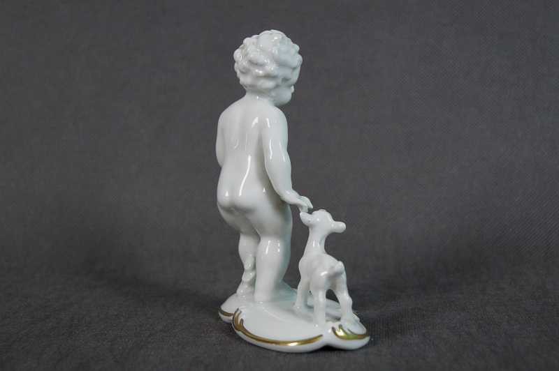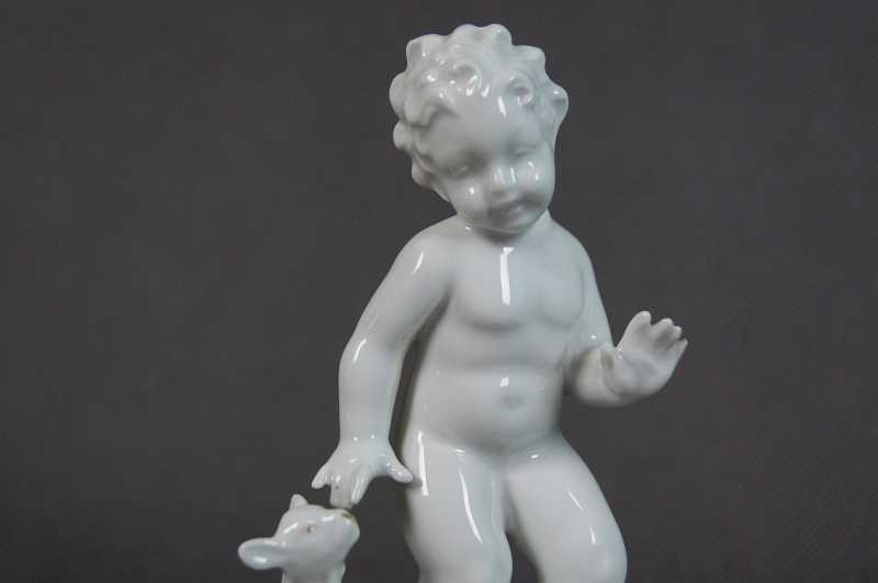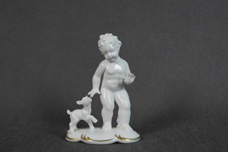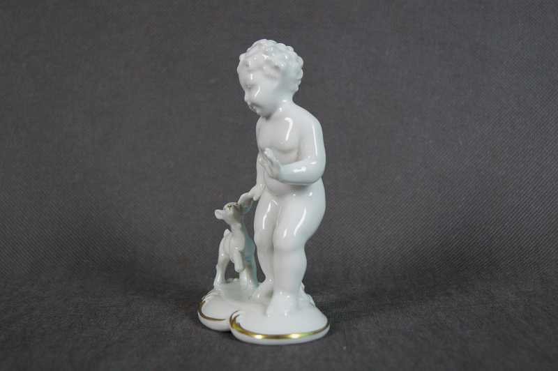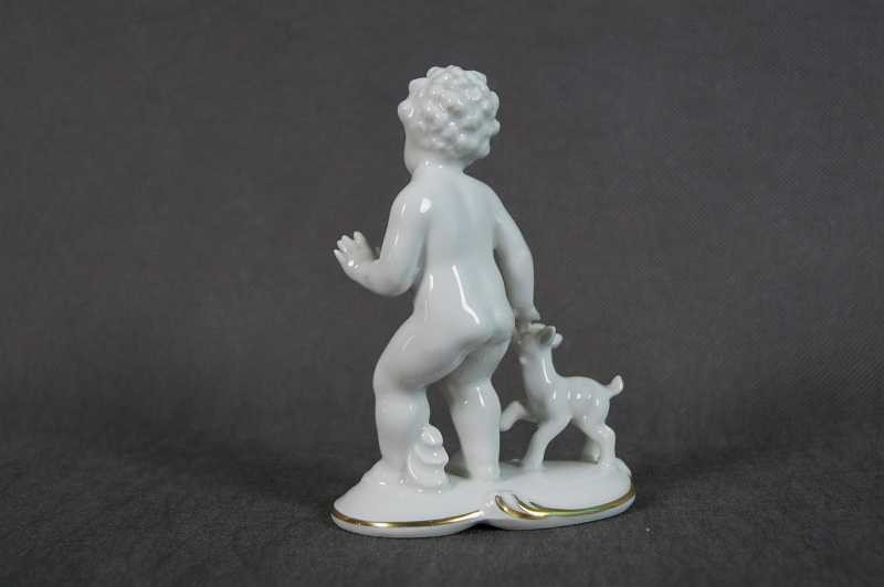Porcelana Gerold biała figurka chłopczyka z kozą