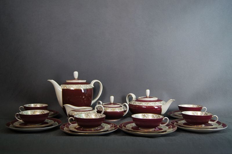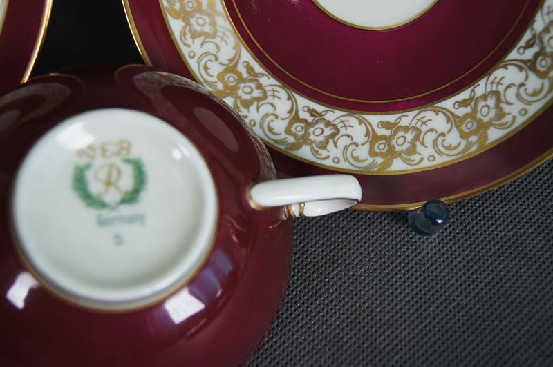 Porcelana Reichenbach Serwis kawa - herbata burgund złocenia Okaz !!!