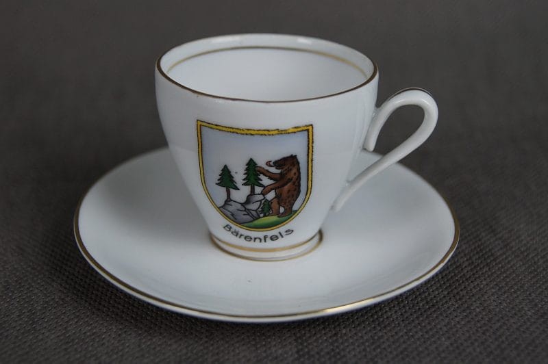POCHODZENIE: przedmiot sygnowany na filiżance znakiem wytwórni z Ilmenau.