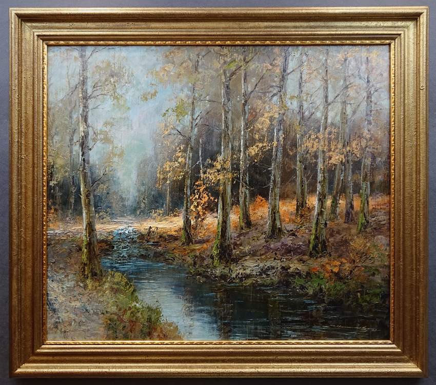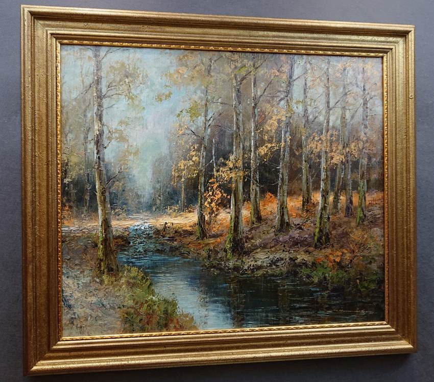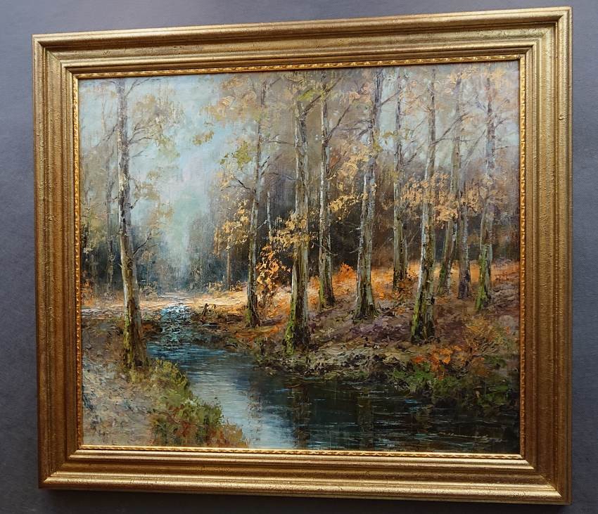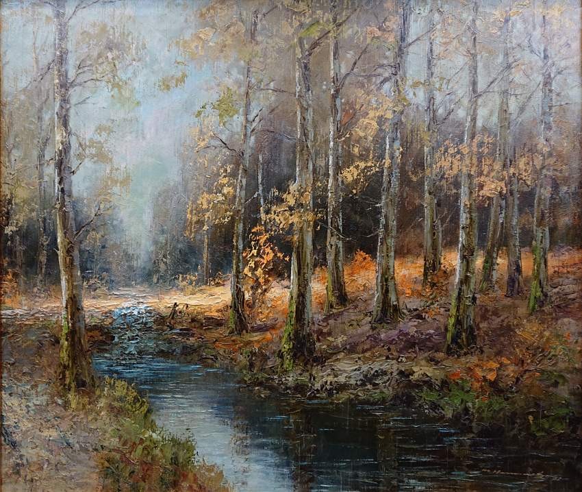 Potok w lesie pełnym słońca ⭐ malarstwo aukcyjne Christian Stemmeler