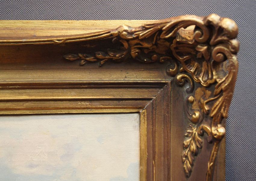 Całość oprawiona w oryginalną, starą, okazałą przestrzenną ramę. Obraz polecamy koneserom cennego i dobrego malarstwa. Obrazy artysty cieszą się dużym powodzeniem i są pożądane na aukcjach dzieł sztuki.