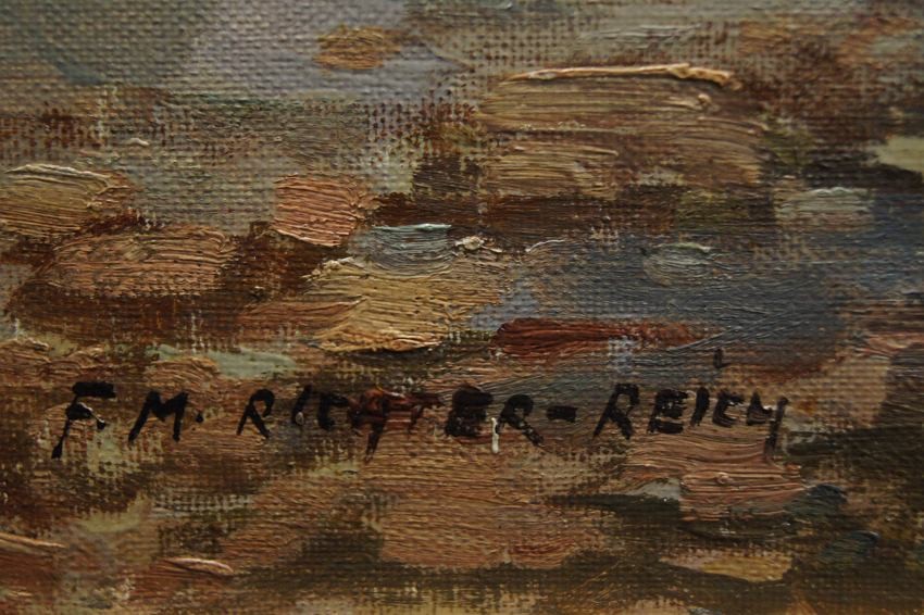 O ARTYŚCIE: F. Max Richter Reich - artysta malarz pochodzenia niemieckiego, żyjący w latach ( 1896 - 1950). Urodził się i zmarł w Berlinie. Studiował w Lewin-Funke - Schule w Berlinie. Później przebywał w Amsterdamie i Haarlemie. Wiadomo także, że w 1934 był w Dordrechcie. Malował bardzo często widoki miast przedstawiające często targi rybne lub kwiatowe a także pejzaże i mariny.