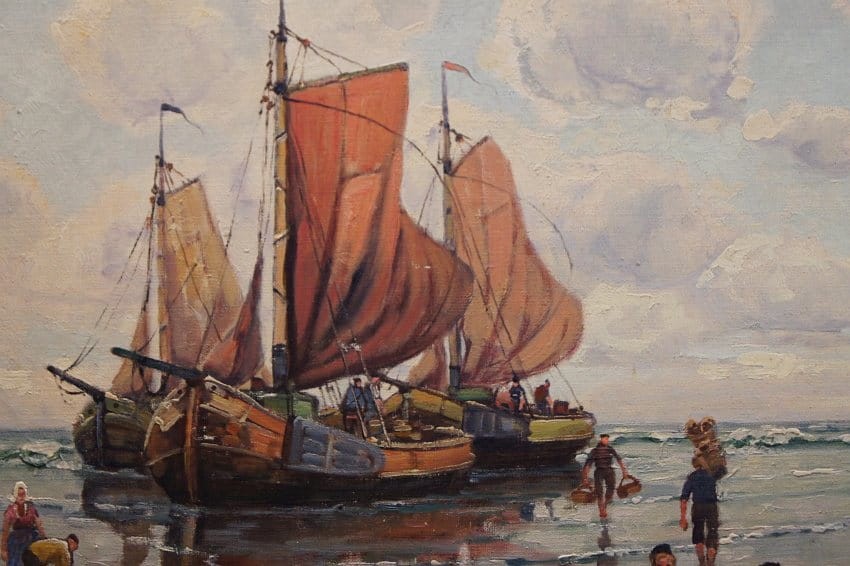 Powrót z połowów stary obraz olejny F. M. Richter Reich