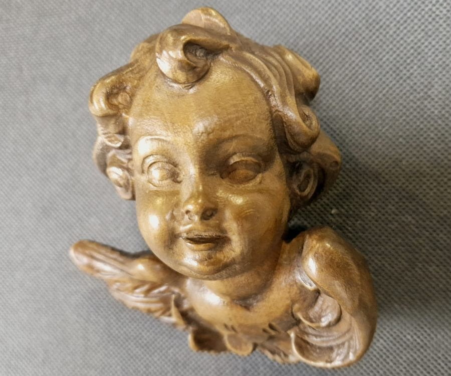 Rzeźbiona głowa w drewnie ⭐ Aniołek cherubinek