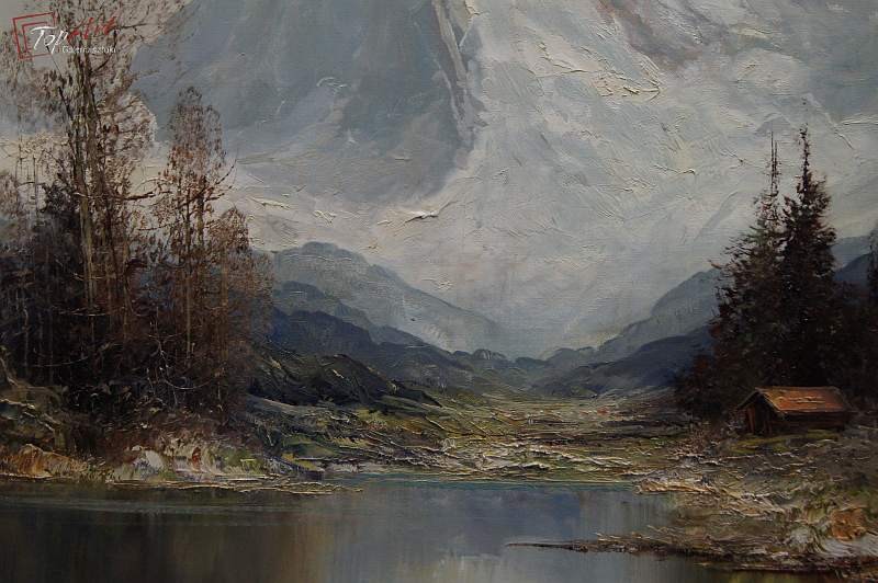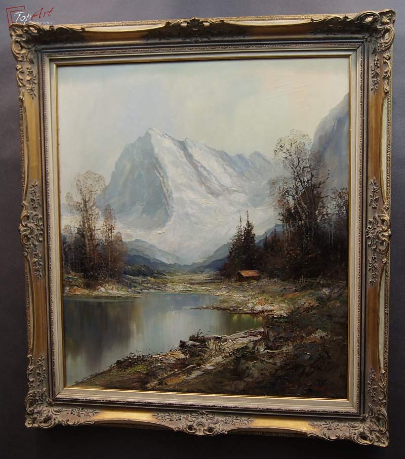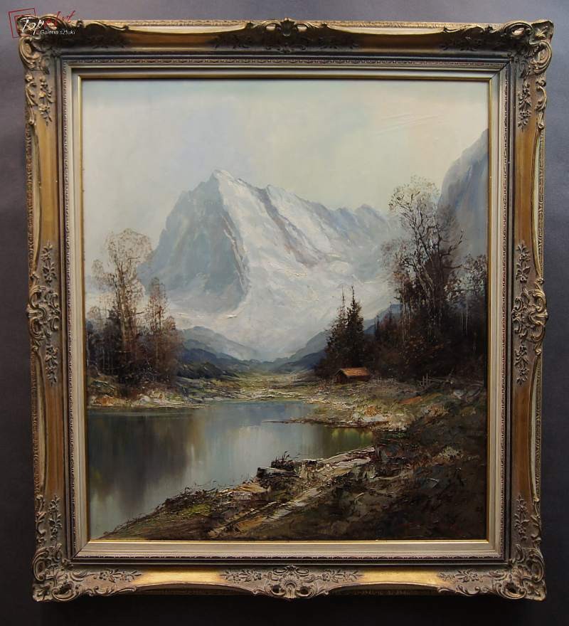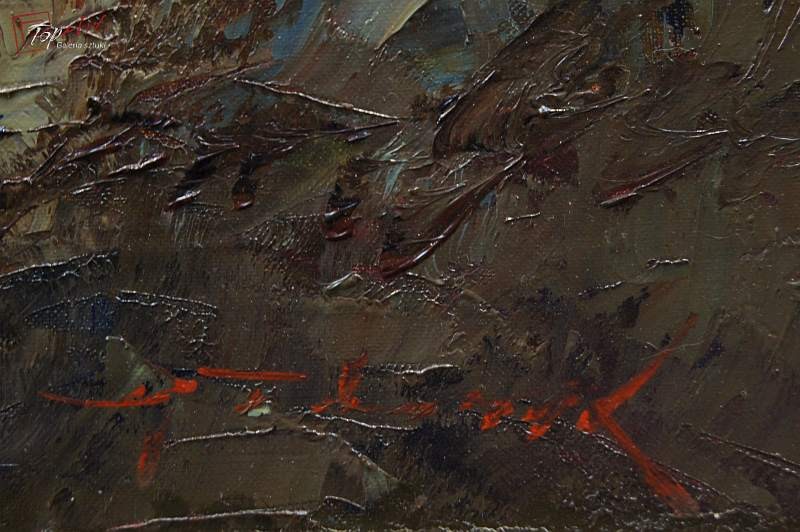 Oryginalny autentyczny niezwykle dekoracyjny duży obraz malowany farbami olejnymi na płótnie. Zastosowana technika malarska: szpachla, pędzel. Dzieło niezwykle profesjonalnie malowane z największym kunsztem. Sygnowany prawy dół: G. Turk. Całość oprawiona w oryginalną,starą,okazałą przestrzenną ramę. Całość pochodzi z lat 60 XX wieku. Stan zachowania bardzo dobry nie wymaga jakichkolwiek interwencji. Wymiary: całości z ramą 98 cm x 88 cm, obraz 80 cm x 70 cm.