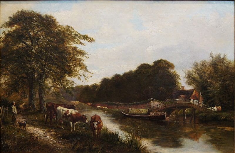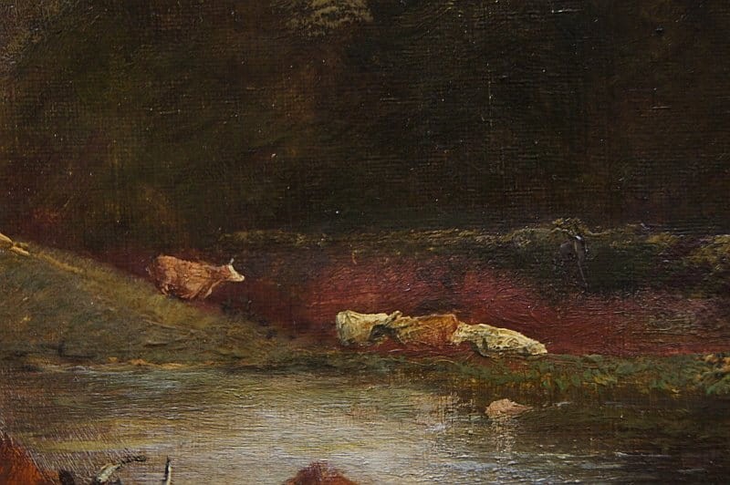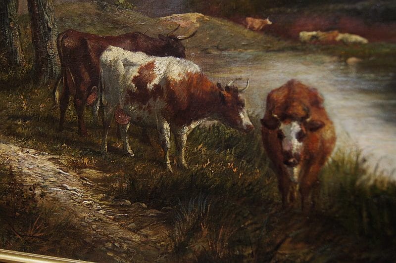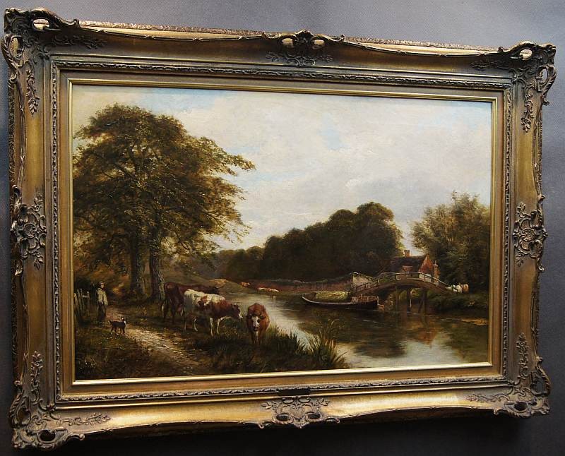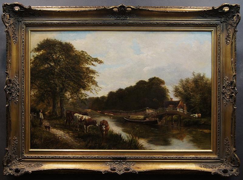 Samuel Joseph Clark - XIX wieczny angielski pejzaż olejny z krowami
