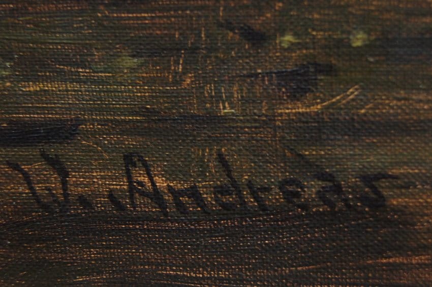 Obraz jest sygnowany odręcznie przez artystę w lewym dolny narożniku: W. Andreas. Obraz oprawiony jest w przepiękną, dekoracyjną przestrzenną, bogatą ramę w kolorze złota. Do powieszenia na ścianie. Dzieło polecamy koneserom cennego i dobrego malarstwa.