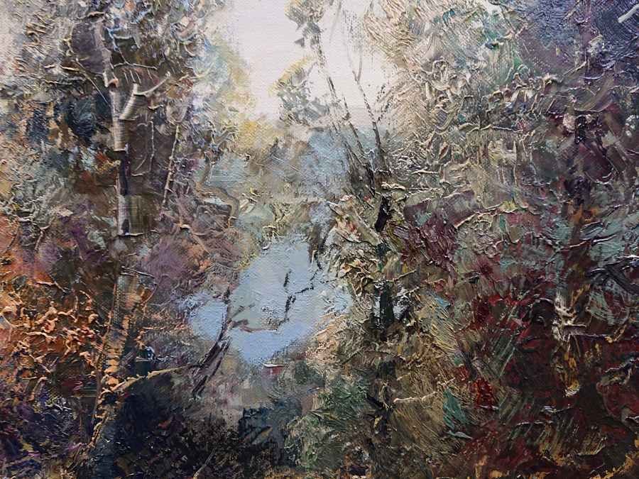 Obraz malowany w technice pędzla i szpachli, struktura nałożonej farby wyczuwalna mocno pod palcami. Jego dzieła są bardzo pożądane na aukcjach dzieł sztuki. Sygnowany odręcznie przez malarza w lewym dolnym narożniku: L. Gschossmann. Obraz oprawiony jest w gustowną, przestrzenną, drewnianą ramę w kolorze brązu i złota. Dzieło polecamy koneserom cennego i dobrego malarstwa.