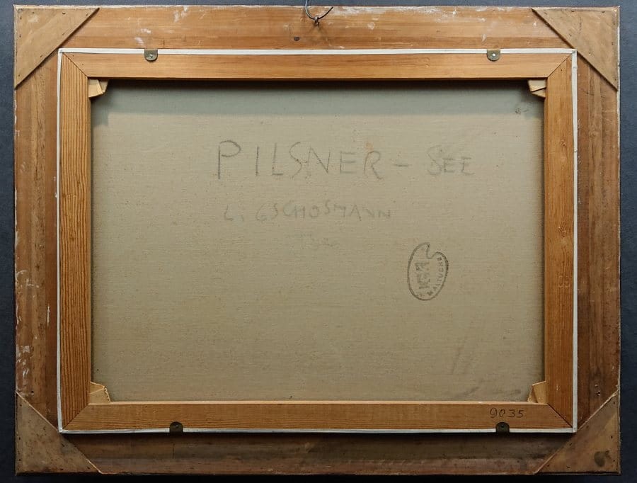 Oryginalny obraz olejny namalowany na płótnie przez Ludwiga Gschossmanna przedstawia malowniczy pejzaż, który ukazuje spokojne i harmonijne widoki natury.