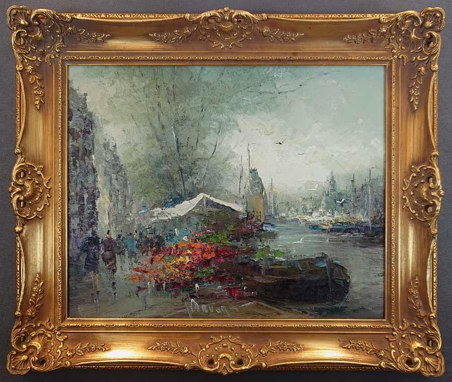 Barwna, wyjątkowa kolejna praca wybitnego holenderskiego, aukcyjnego artysty Johannesa Hubertus Hendrikusa Bevorta, przedstawiająca wedutę ze sztafażem. Wybitny impresjonistyczny artysta, tworzący głównie nożem paletowym, osiągający na światowych aukcjach sztuki rekordowe sprzedaże. Zasłynął ze swoich naturalistycznych krajobrazów, takich jak; sceny myśliwskie, plaże, wydmy i widoki morskie, martwą naturę. Malował także takie tematy jak; widoki miast, jeziora, żaglowce i wnętrza kościołów. W czasie pobytu w Hiszpanii i we Włoszech malował sceny południowoeuropejskie pod pseudonimem „Camprio”. We wczesnym okresie swojej kariery malarskiej nazywał się także „Jan Bévort”.