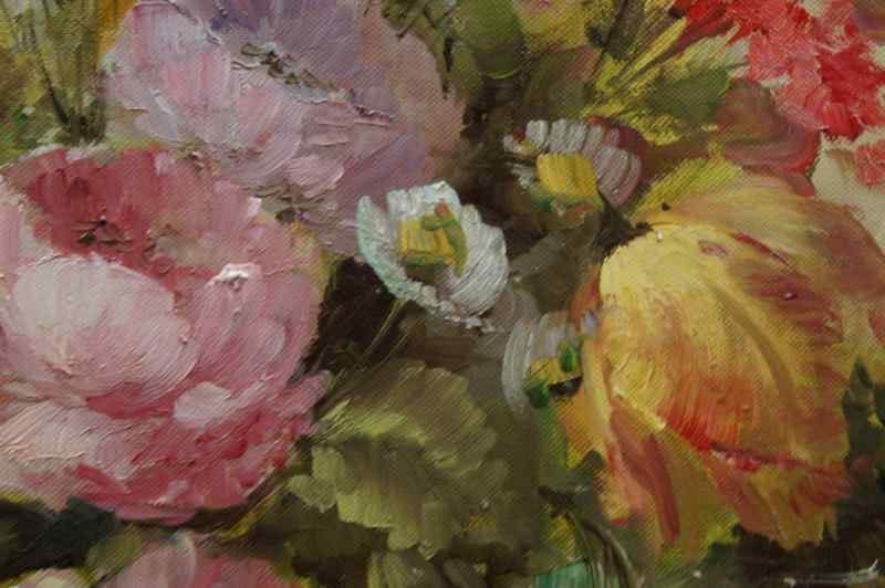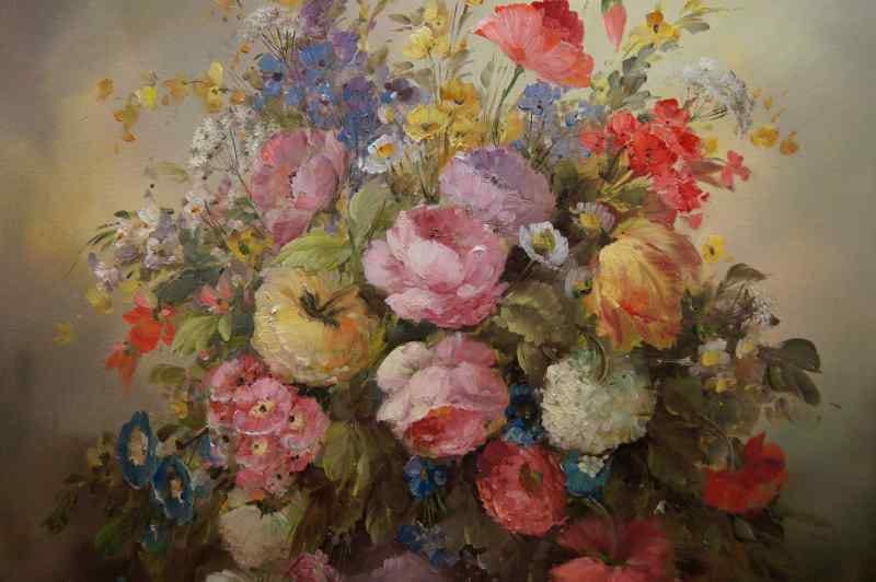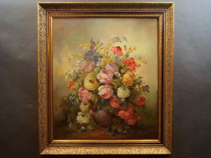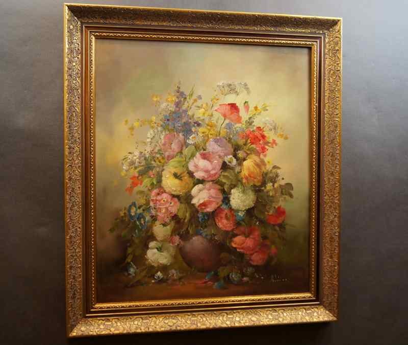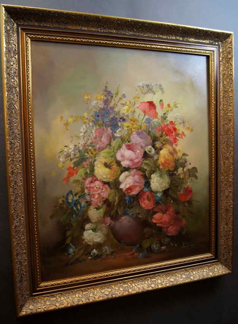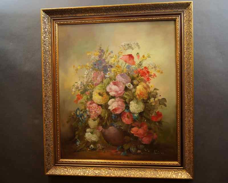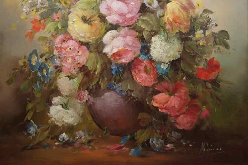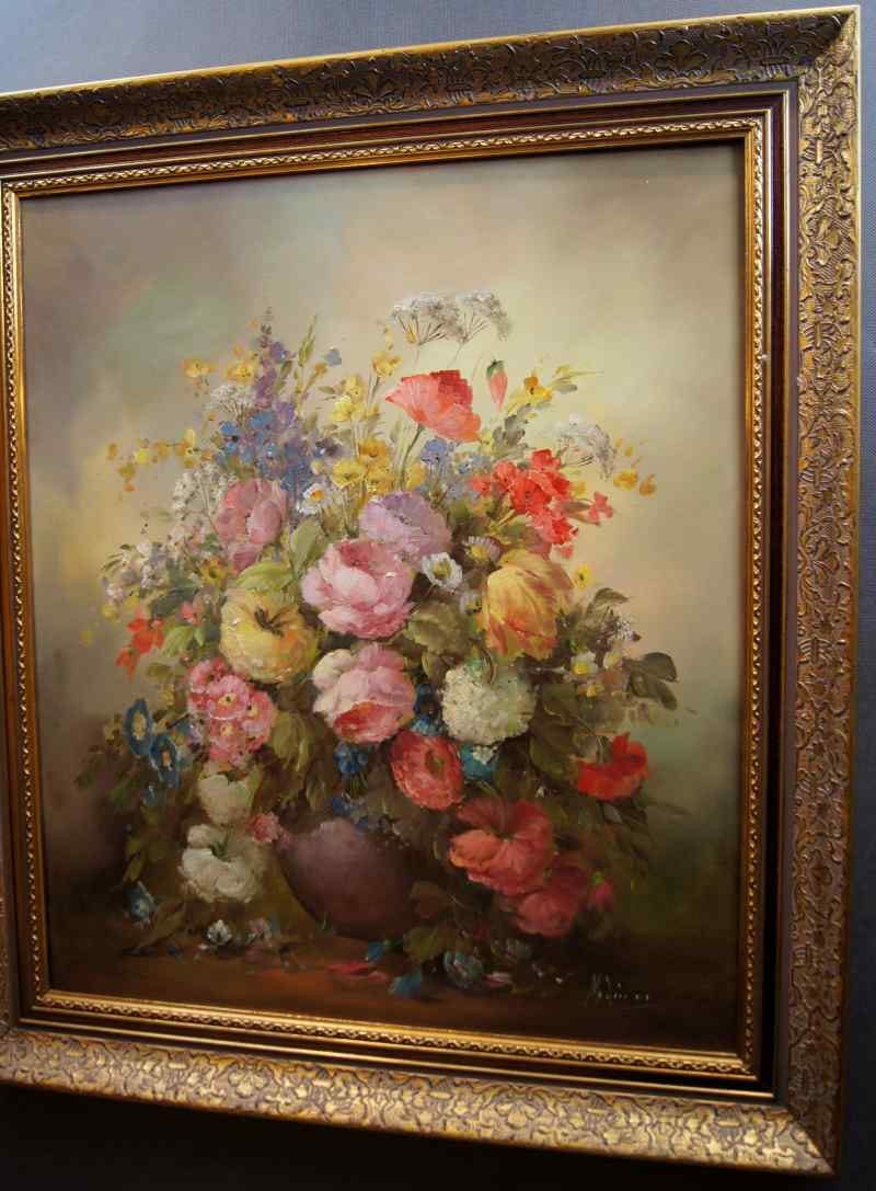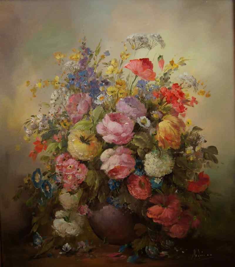 Stary obraz PAŁACOWE DZIEŁO SZTUKI MEDINA LOUISA BUKIET KWIATÓW