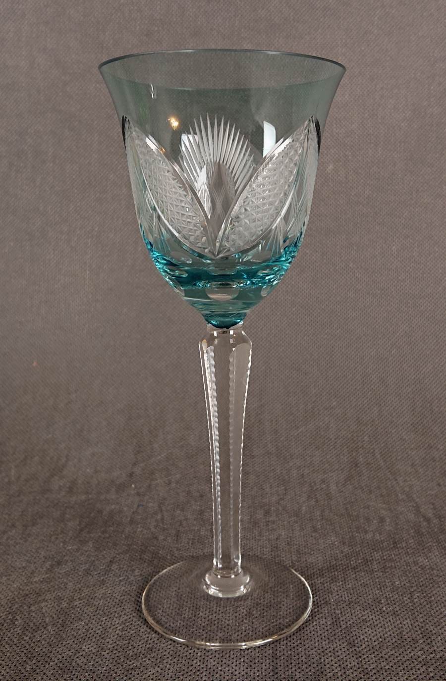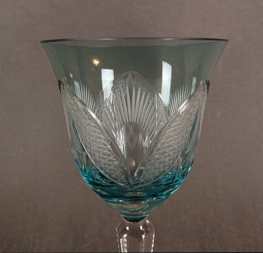 Turkusowy szklany kielich do wina ⭐ VEB Bleikristall Arnstadt
