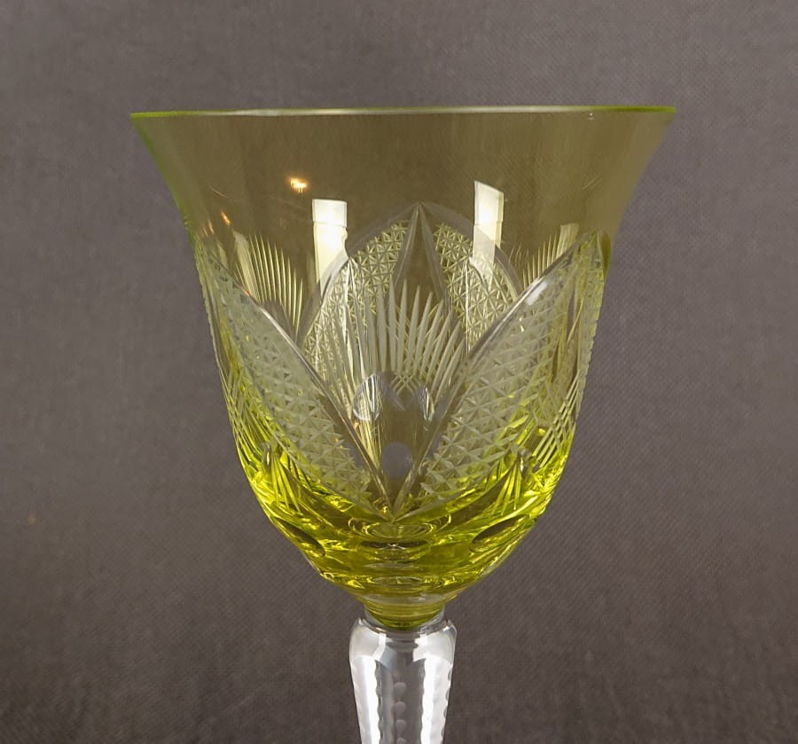 Uranowy szklany kielich do wina ⭐ VEB Bleikristall Arnstadt