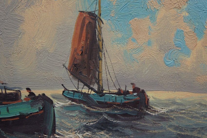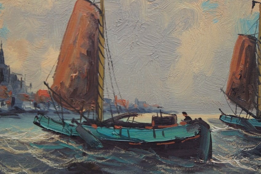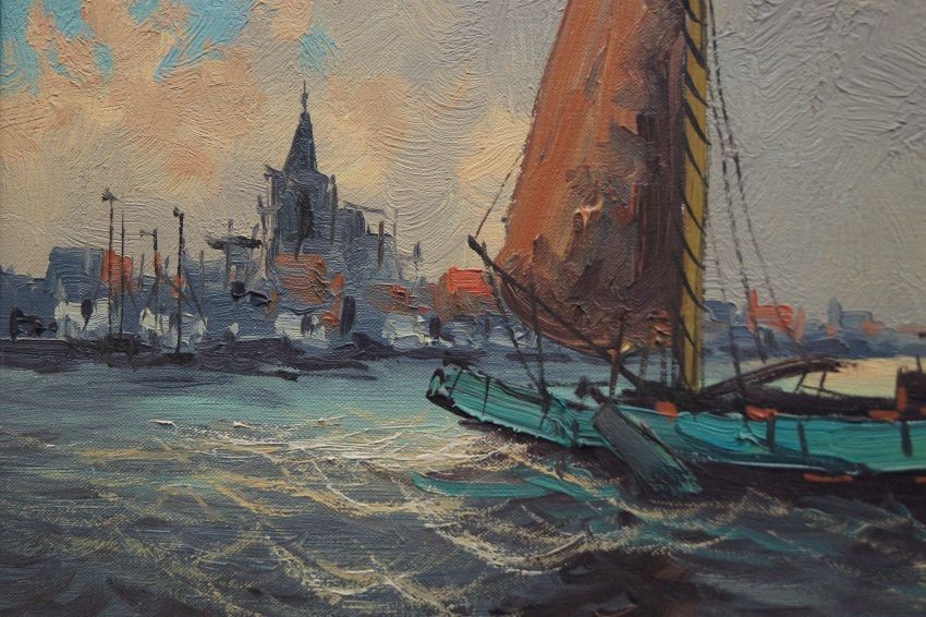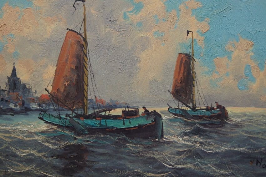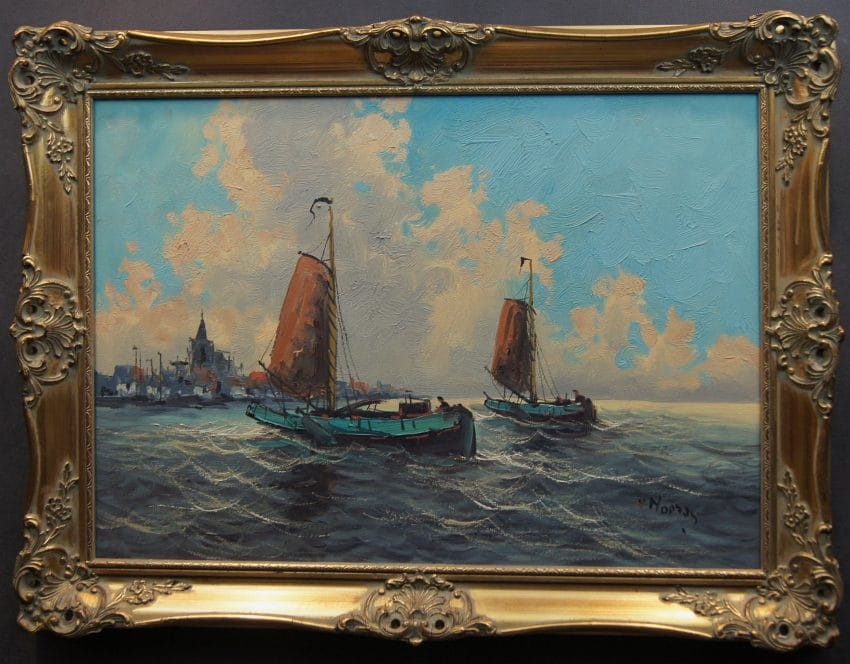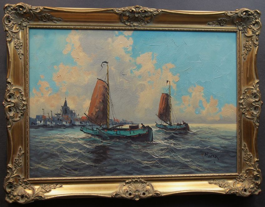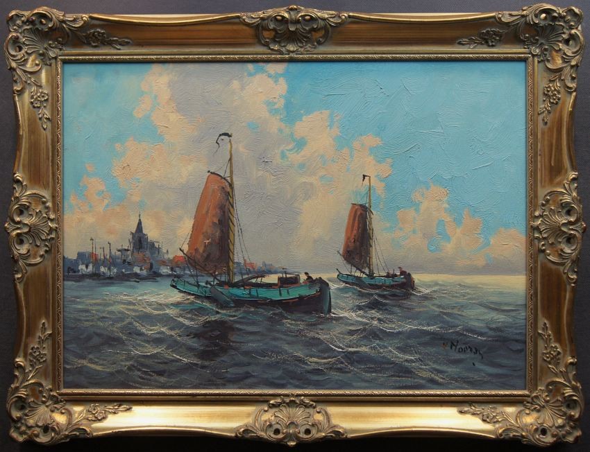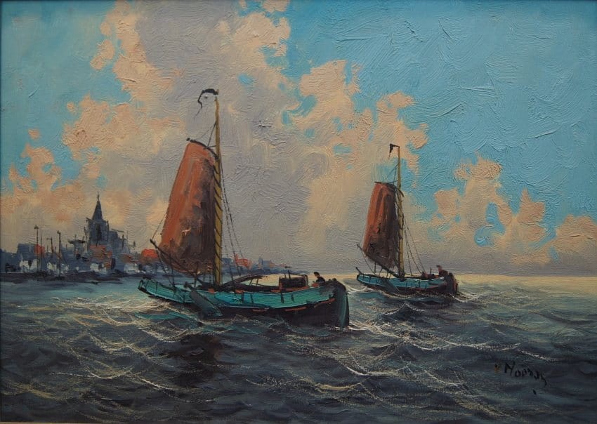 Wim Van Norden holenderskie malarstwo | Łodzie rybaków wpływające do portu