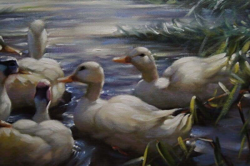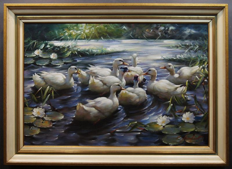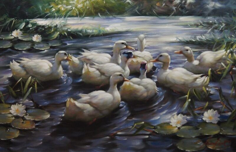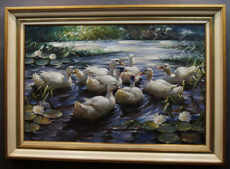 Kaczki barwny obraz olejny