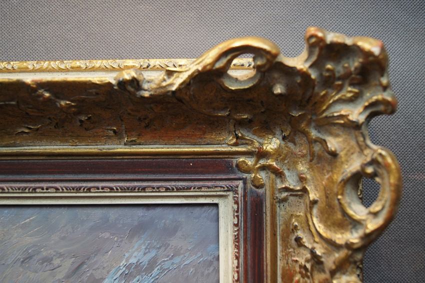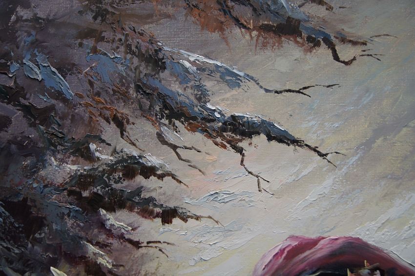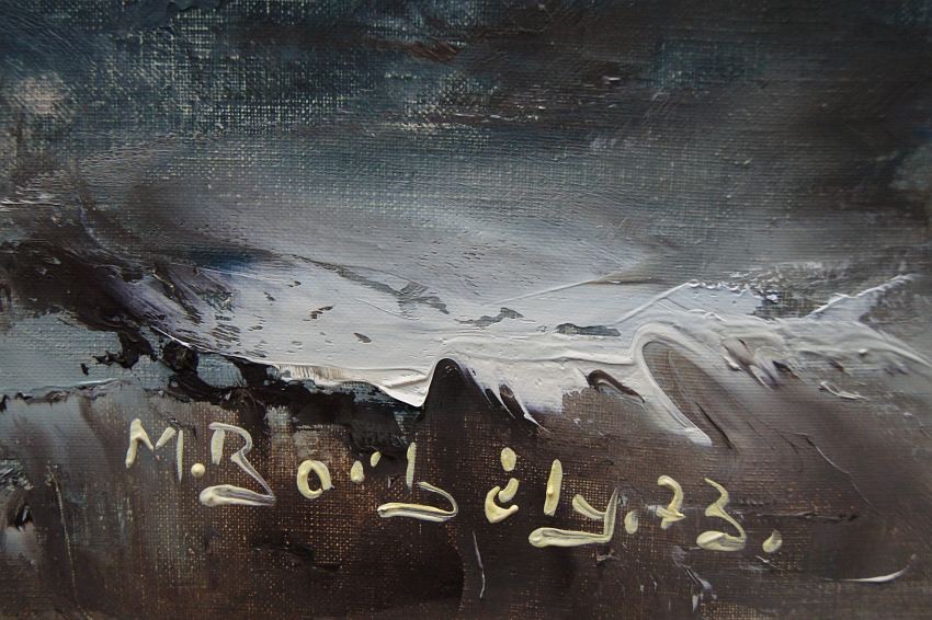 Obraz malowany w technice pędzla. Struktura nałożonej farby wyczuwalna pod palcami. Obraz sygnowany odręcznie przez artystę w prawym dolnym narożniku: M. Borbely. 73. Płótno oprawione jest w przestrzenną ramę z okresu powstania obrazu. Dzieło polecamy koneserom cennego i dobrego malarstwa. Obraz idealnie pasuje do wystroju nowoczesnych jak i stylowych wnętrz.